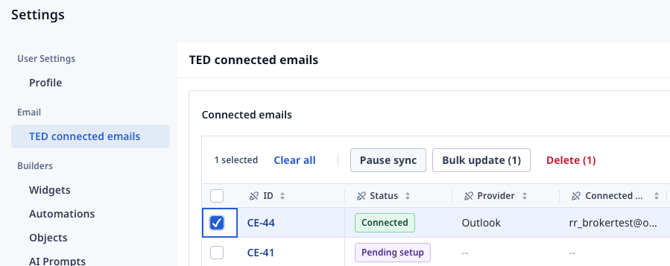 ✅ TED only reads emails in the folders you choose — e.g., “dispatch,” “customer A.”. TED ingests the last 30 days of emails, up to the most recent 300 email threads/conversations.