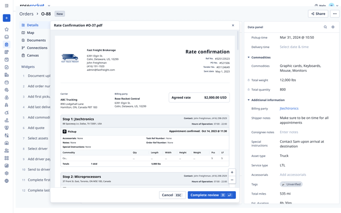 3. Users can upload documents such as quote requests or rate confirmations directly to Rose Rocket.