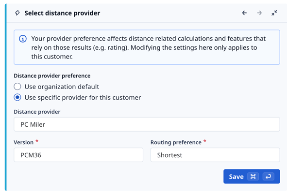 - The new field Customer distance shows mileage based on the customer’s selected provider